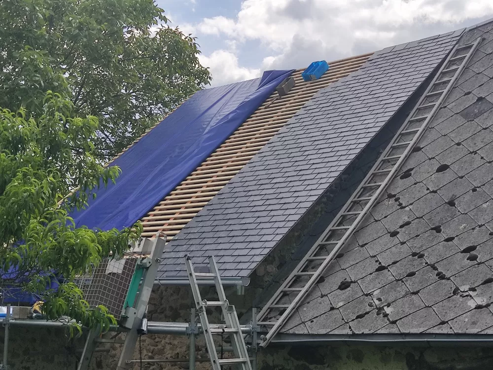 Zoomer 21-02-2023 Menuiserie Jean-Michel Tauron a récemment réalisé une rénovation de toiture en ardoise à Treignac.